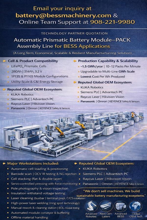 AUTOMATIC PRISMATIC BATTERY MODULE -PACK ASSEMBLY LINES
